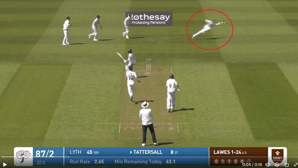এবার ইয়র্কশায়ারের বিরুদ্ধে সারের হয়ে কিপিং করার সময় দুর্দান্ত একটি ক্যাচ ধরেন বেন ফোকস। ইয়র্কশায়ারের প্রথম ইনিংসে জোনাথন ট্যাটারসালের যে ক্যাচটি ধরেন ফোকস, তাকে এককথায় অবিশ্বাস্য বলতেই হয়। ইনিংসের ৩২.৬ ওভারে টম লাওয়েসের বলে পুল শটের চেষ্টা করেন জোনাথন। বল ব্যাটে ঠিক মতো কানেক্ট হয়নি। ফলে বল শর্ট ফাইনলেগ অঞ্চলে হাওয়ায় ভেসে যায়। ফোকস নিজের বাঁ-দিকে অনেকটা দৌড়ে শূন্যে শরীর ছুঁড়ে দেন। শূন্যে ভেসে থাকা অবস্থায় এক হাতে ক্যাচ ধরে নেন ফোকস।