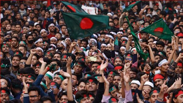 বাংলাদেশে ঢাকার কেন্দ্রীয় শহীদ মিনারে ছিল ছাত্র আন্দোলনের নেতাদের ডাকে সমাবেশ। যে ছাত্র-গণ আন্দোলন শেখ হাসিনাকে বাংলাদেশের মসনদচ্যুত করেছে, সেই জুলাই-আন্দোলনের ঘোষণাপত্রের দাবিতে এবার সুর চড়িয়ে বাংলাদেশের অন্তরবর্তী ইউনুস সরকারের কাছে ডেডলাইন বেঁধে দিলেন ছাত্রনেতারা। বৈষম্য়বিরোধী ছাত্র আন্দোলন আর নাগরিক কমিটির নেতারা ১৫ জানুয়ারির মধ্যে জুলাই বিপ্লবের ঘোষণাপত্র ঘোষণা করতে ডেডলাইন বেঁধে দিলেন ইউনুস সরকারের জন্য। এদিনও আওয়ামি লিগের বিরোধিতা শোনা যায় ছাত্রদের মুখে।