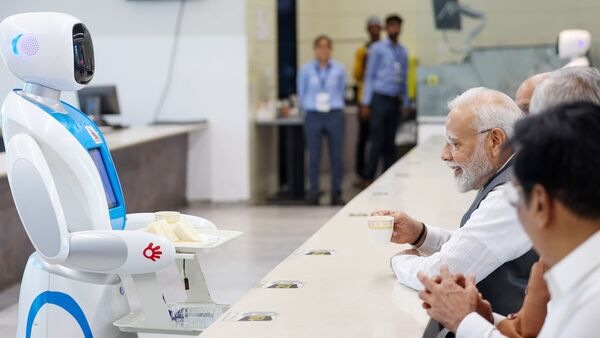 মোদীর জন্য চা নিয়ে এল রোবট, সঙ্গে স্যান্ডউইচ, হাসিমুখে কাপ নিলেন প্রধানমন্ত্রী