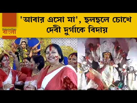 চোখের পলকে কেটে গেল পুজো। মা দুর্গাকে বিদায় জানাচ্ছে পশ্চিমবঙ্গ। দেবী দুর্গাকে বিদায় জানানোর আগে করা হয় বরণ। চলে সিঁদুর খেলা। নদিয়ার নবদ্বীপের বিভিন্ন পুজো মণ্ডপে সকালে দেবী দুর্গাকে বরণ করা হয়। পান, সুপারি ও সিঁদুর পরিয়ে দেন দেবী দুর্গাকে। তারপর সিঁদুর খেলায় মেতে ওঠেন মহিলারা। একই ছবি ধরা পড়ে রাজ্যের অন্যত্রও। বিস্তারিত দেখুন ভিডিয়োয় -