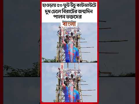 ৫০ ফুট উঁচু কাটআউটে মালা পরিয়ে, দুধ দিয়ে স্নান করিয়ে বিরাট কোহলির ৩৬তম জন্মদিন পালন করলেন ভক্তরা। সাঁতরাগাছি বাস টার্মিনালে এই ঘটনা ঘটায় ওয়েস্ট বেঙ্গল হেল্প ফাউন্ডেশন। এর জন্যে রাজ্যের বিভিন্ন প্রান্ত থেকে বিরাট অনুরাগীরা সাঁতরাগাছিতে আসেন ৷ সেখানে উপস্থিত বিরাট কোহলির অনুরাগীদের জন্য খাওয়া-দাওয়ার ব্যবস্থাও করা হয়৷ সেই সঙ্গে বিরাটকে নিয়ে একটি চিত্র প্রদর্শনীর আয়োজন করা হয়।